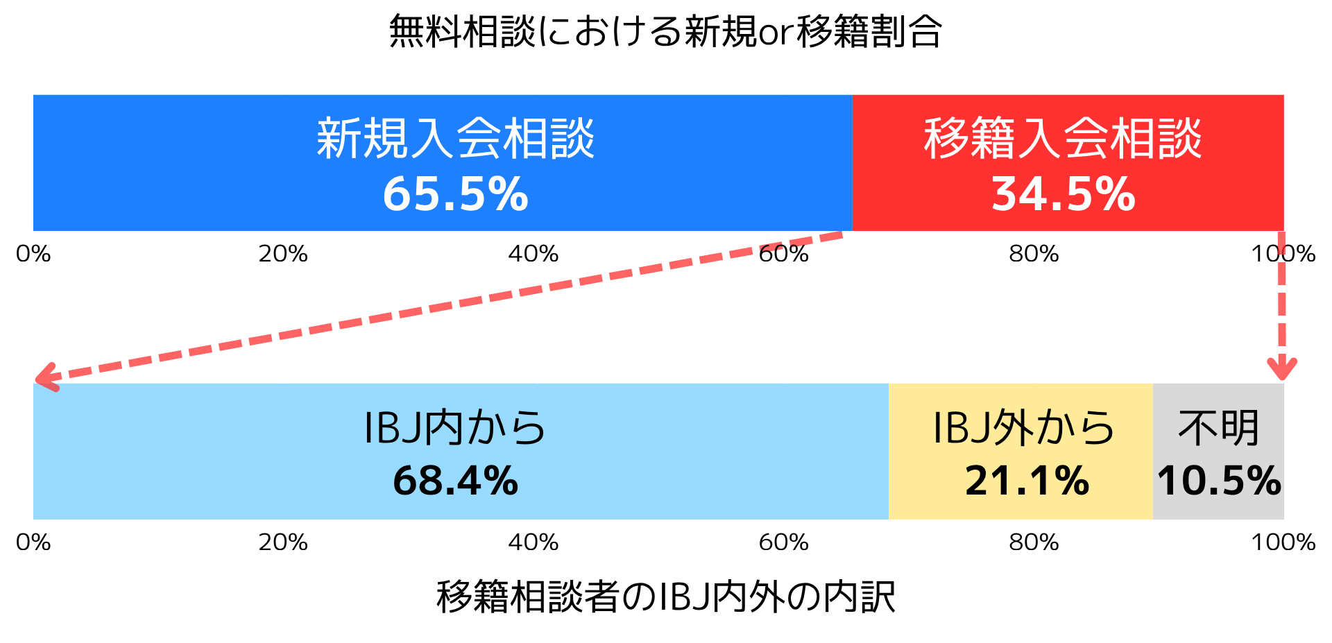 移籍相談はどれくらい多い?割合とIBJ内外の内訳